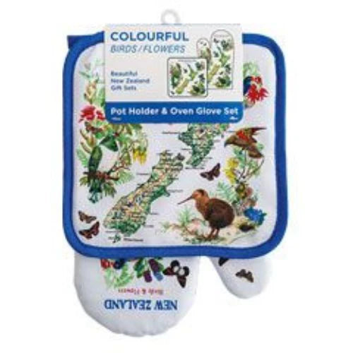 View full detailsNZ Pot Holder & Oven Glove - Birds & Flowers A kitchen necessity to provide heat protection when you are cooking. Set Includes: 1x Oven Glo...
